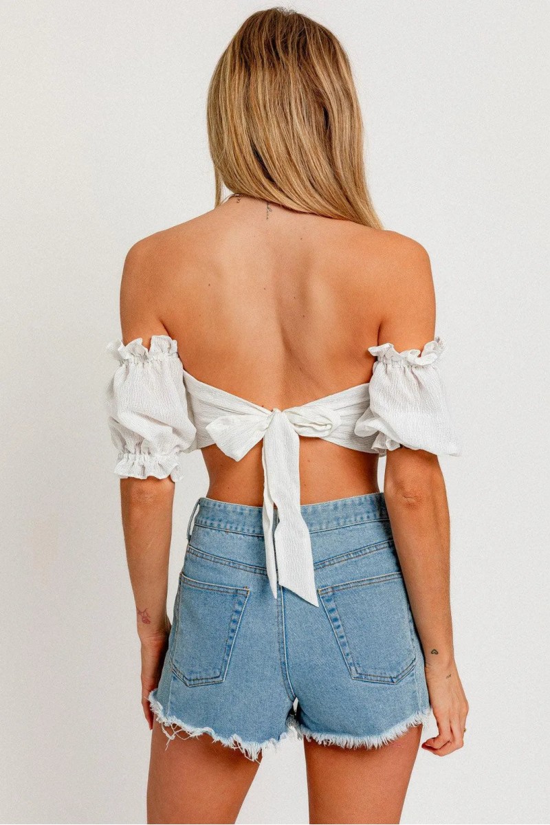 • Product Code: Off Shoulder Frill Stripe Ruffle Crop Top