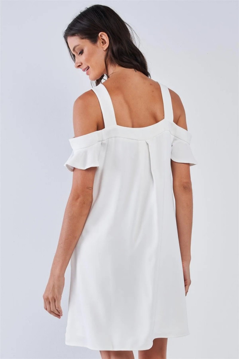 Design: Off-White Relaxed Fit V-Neck Ruffle Sleeve Mini Dress — a chic and elegant mini dress featuring a soft V-neckline and delicate ruffle sleeves for a feminine touch.