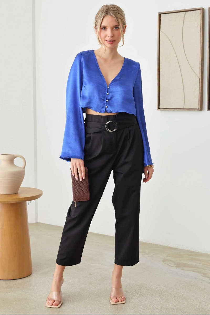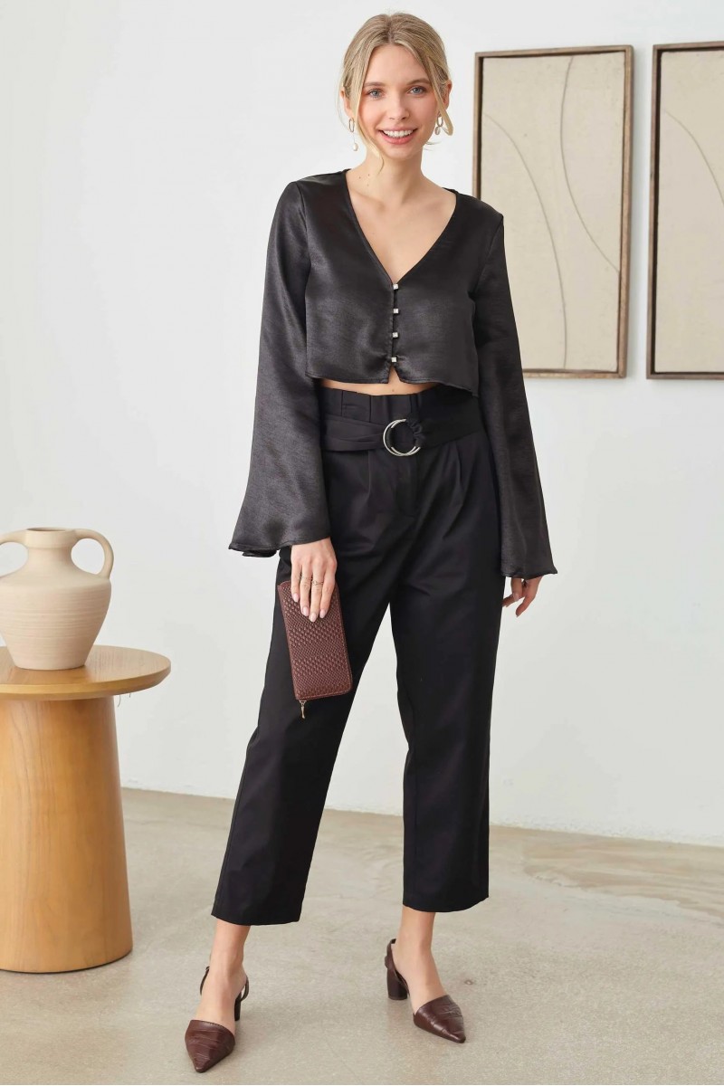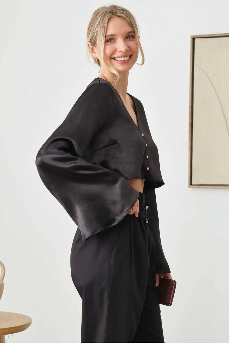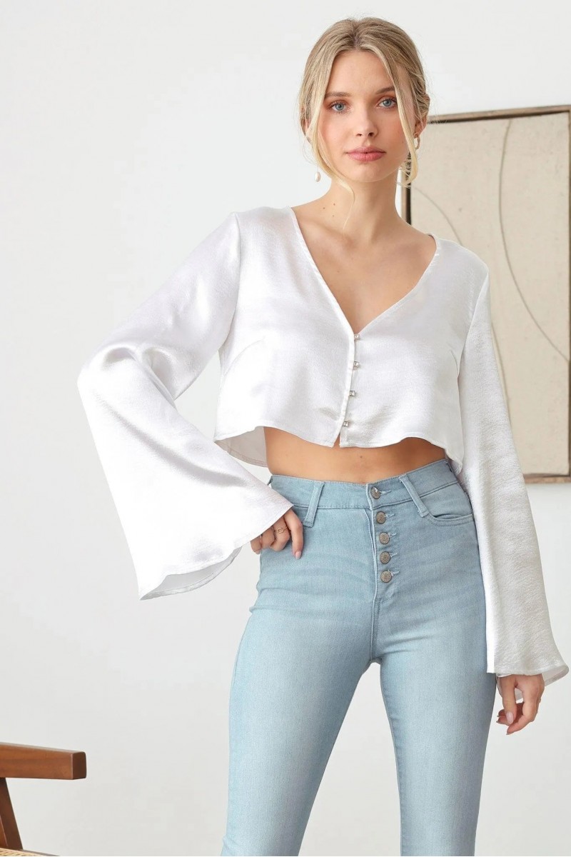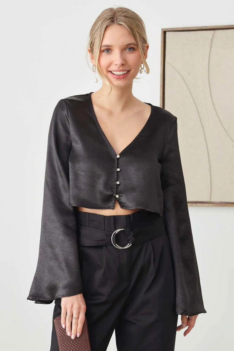 • Product Code: Satin Rhinestone Buttons Closure Crop Top