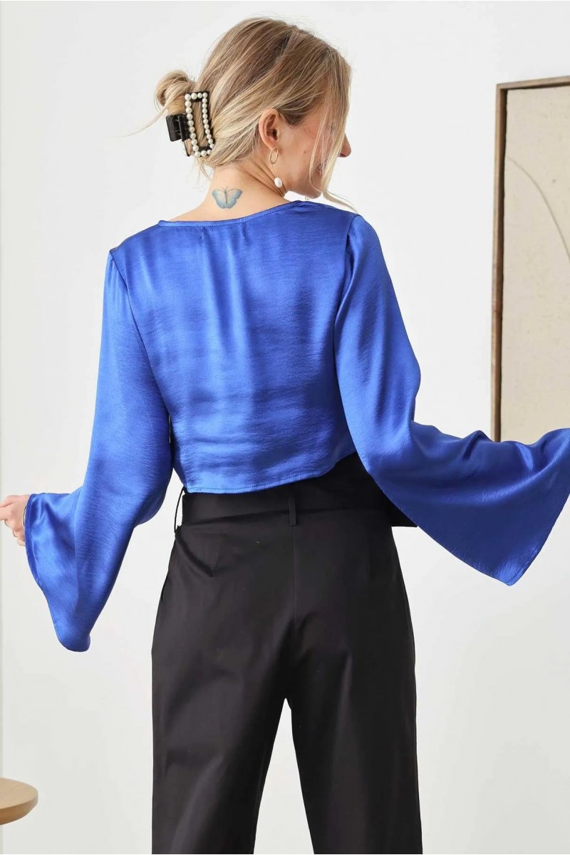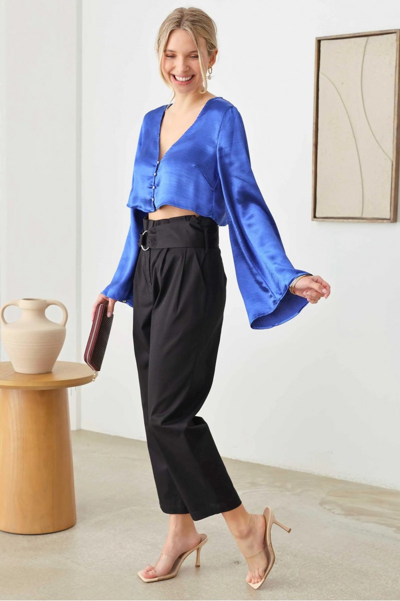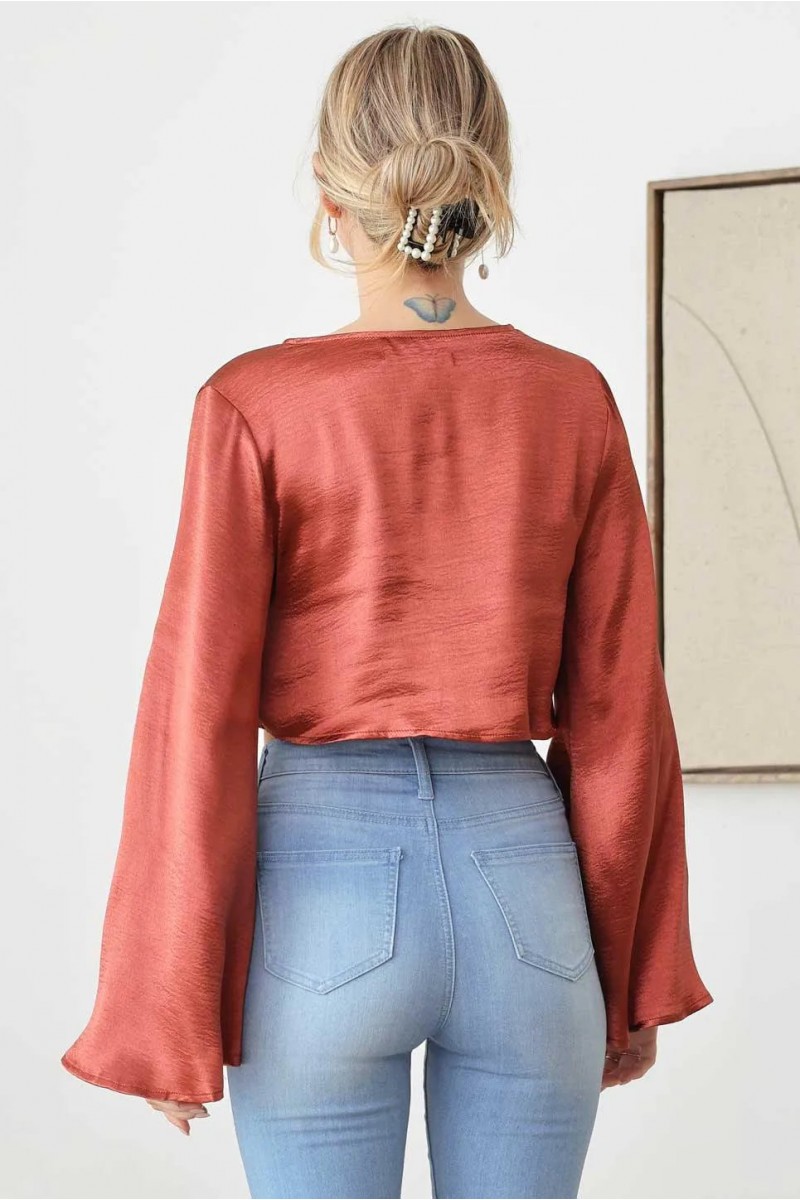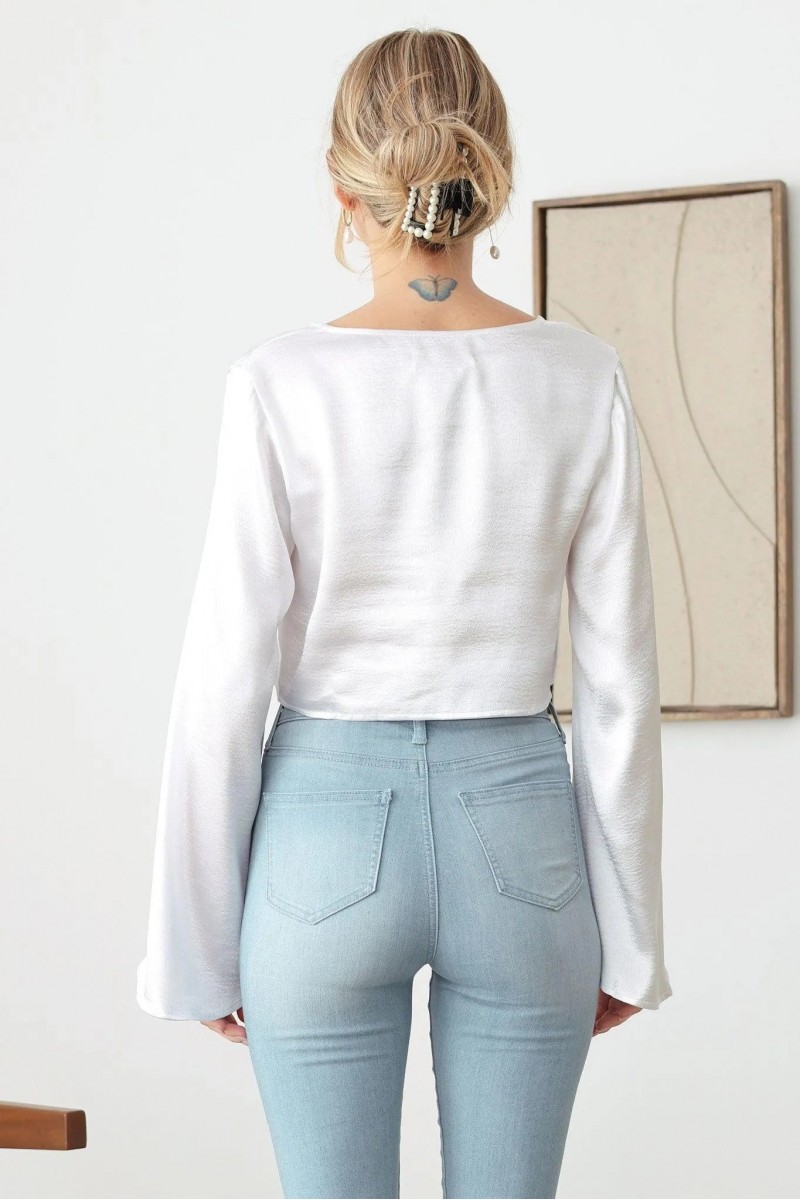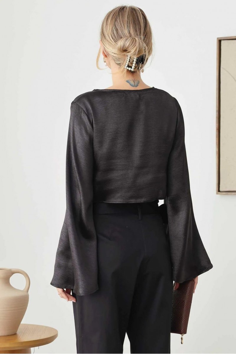 • Product Code: Satin Rhinestone Buttons Closure Crop Top