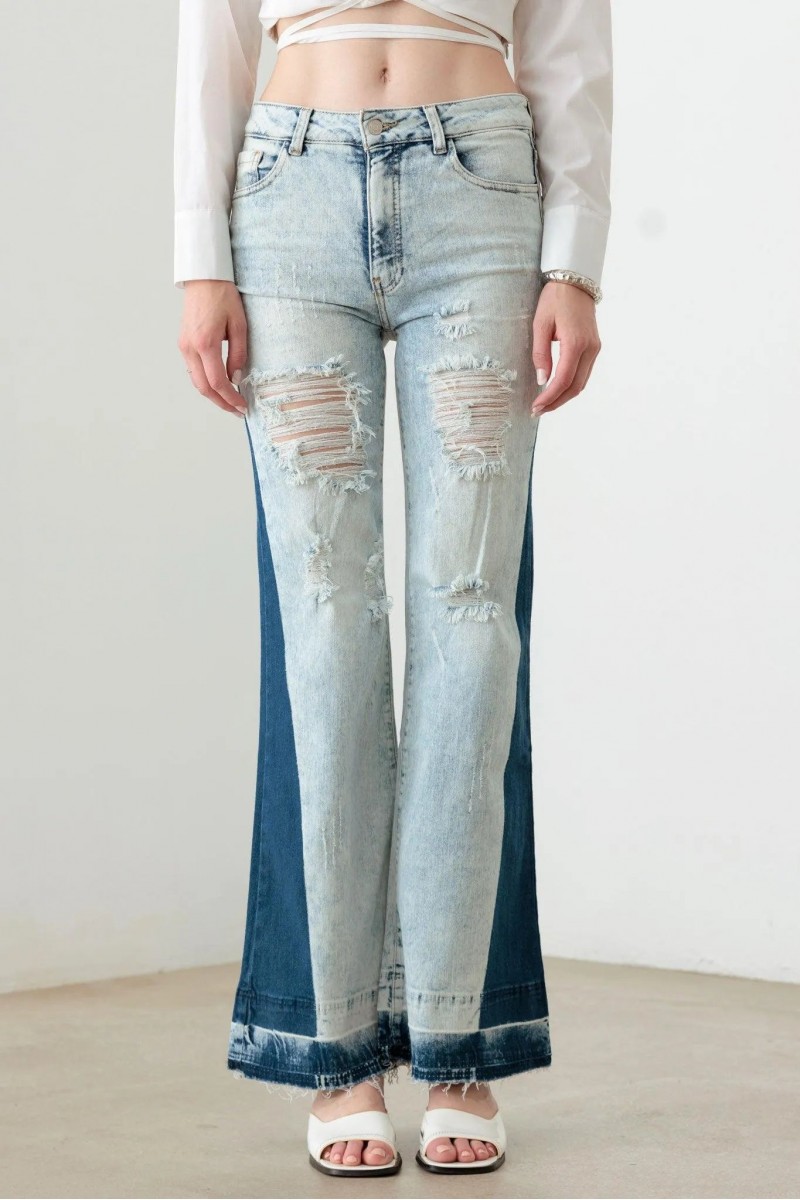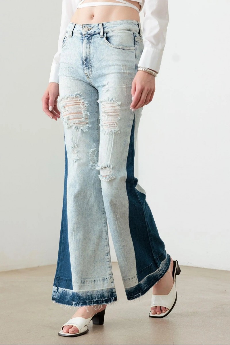 Tow Color Acid Wash Flare Denim Jeans