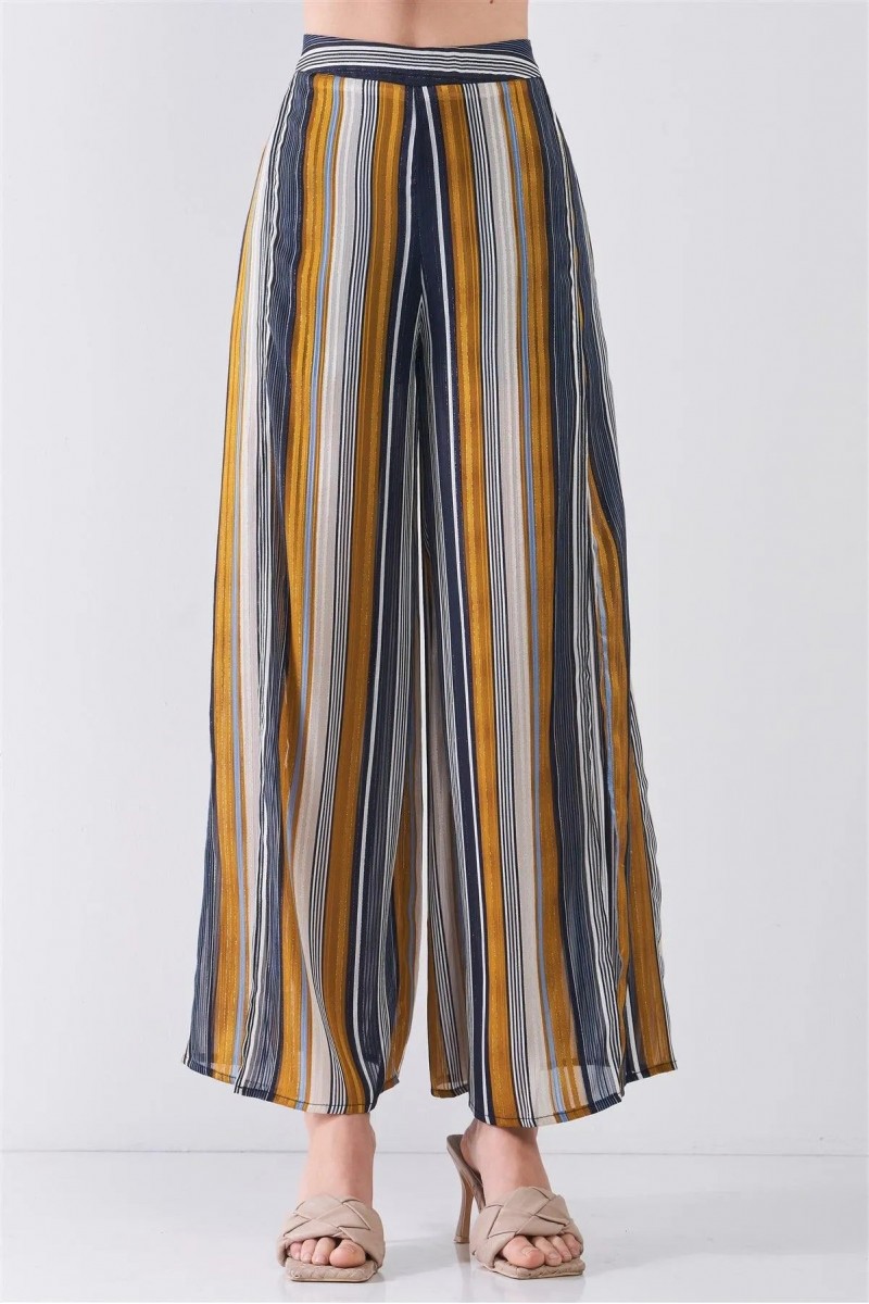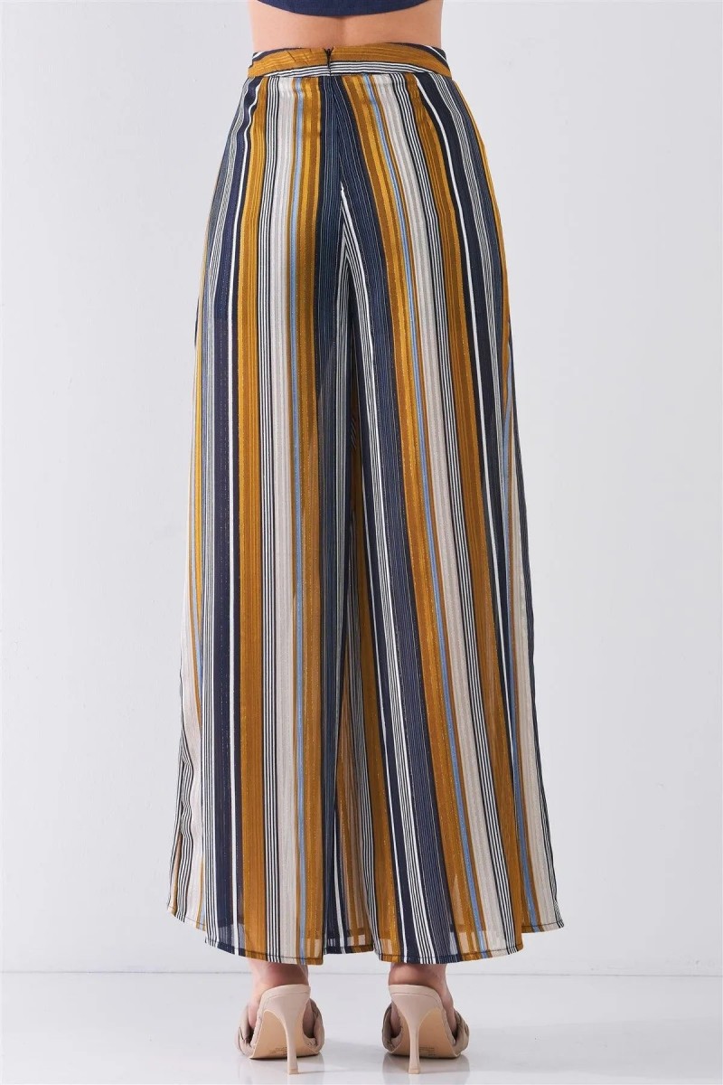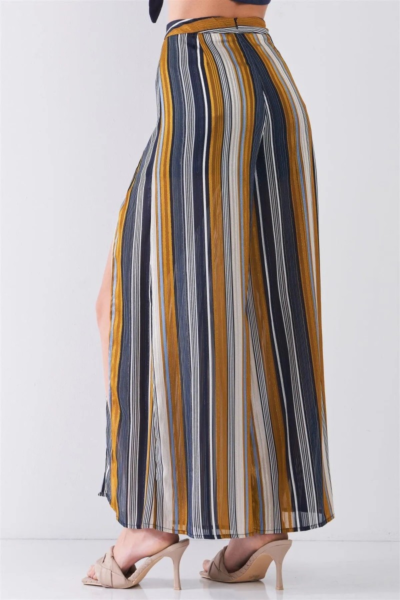 Striped Glitter Stitching High Waist Side Slit Wide Leg Pants