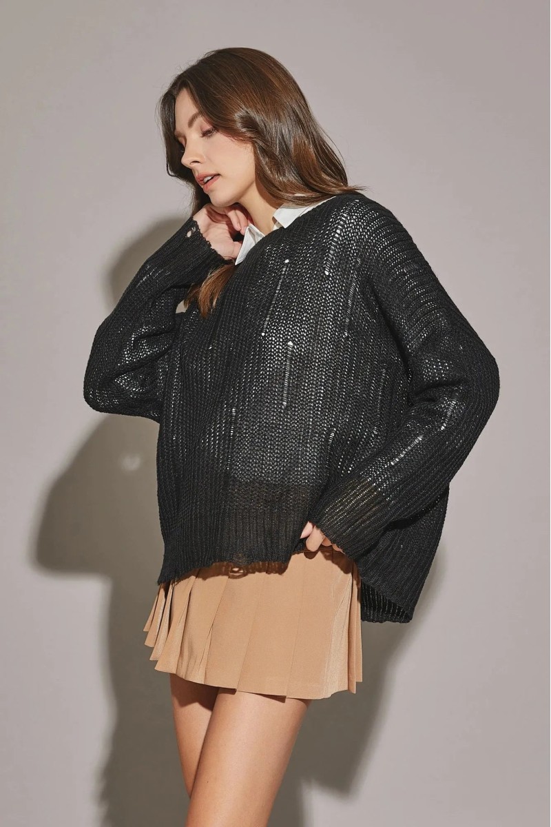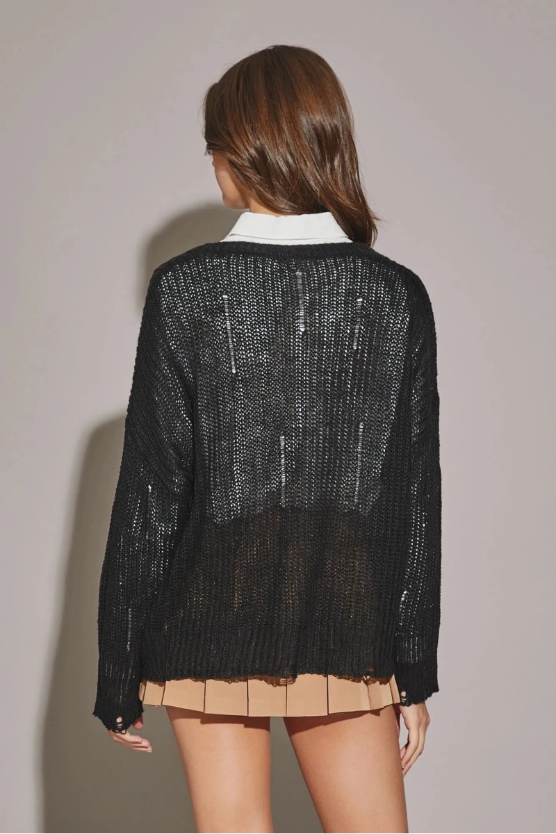• Product Code: Long Sleeve Loose Fit Distressed Sweater
