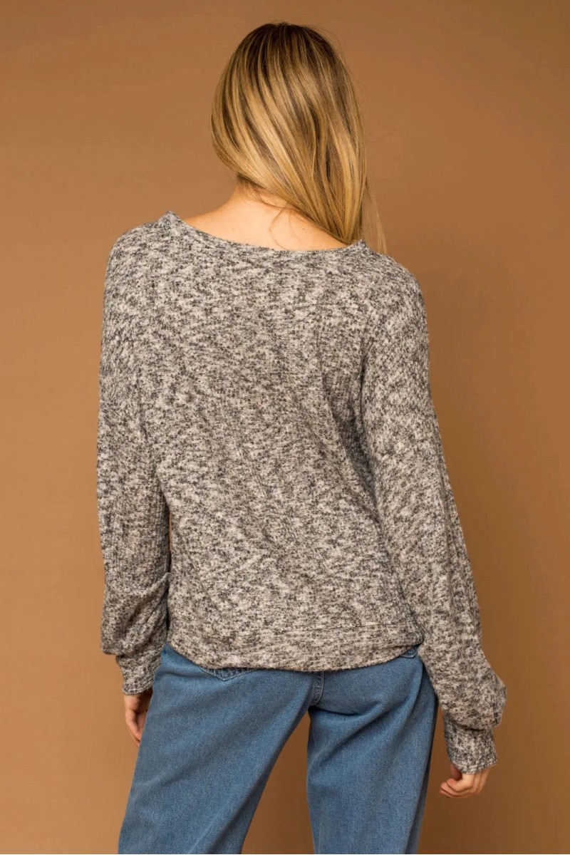 Stay cozy and stylish with our Long Ruching Sleeve Marled Sweater. Designed with comfort in mind, this sweater features long ruched sleeves and a marled pattern. Perfect for any occasion, embrace your curves and elevate your wardrobe with this must-have piece.