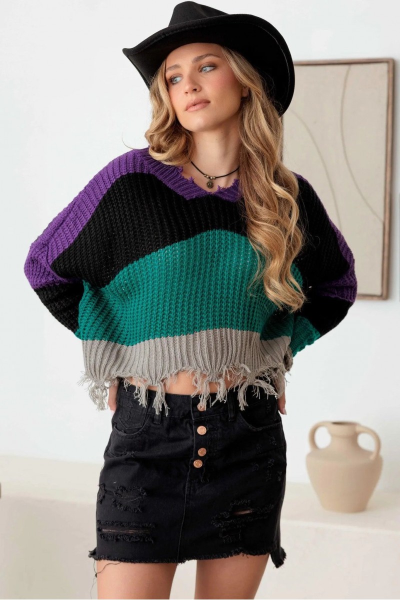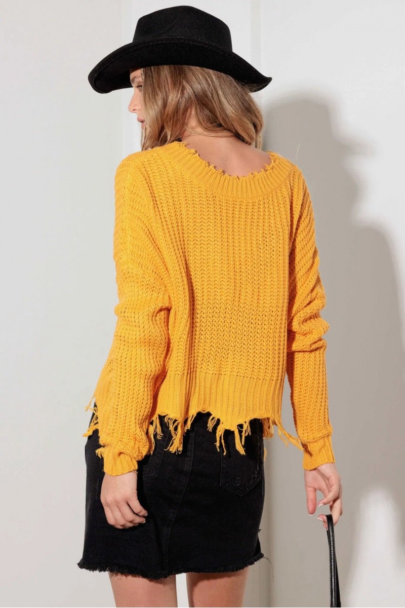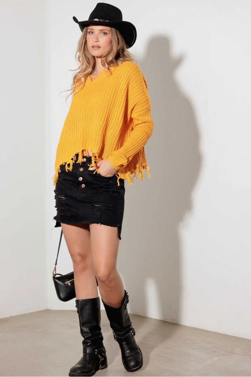 Indulge in luxury with our V Neck Long Sleeve with Destroyed Hem Sweater. Crafted with intricate details and a sophisticated V neck, this sweater exudes elegance and style. The long sleeves and destroyed hem add a touch of edginess. Perfect for cooler weather, our sweater will keep you warm and fashionable.