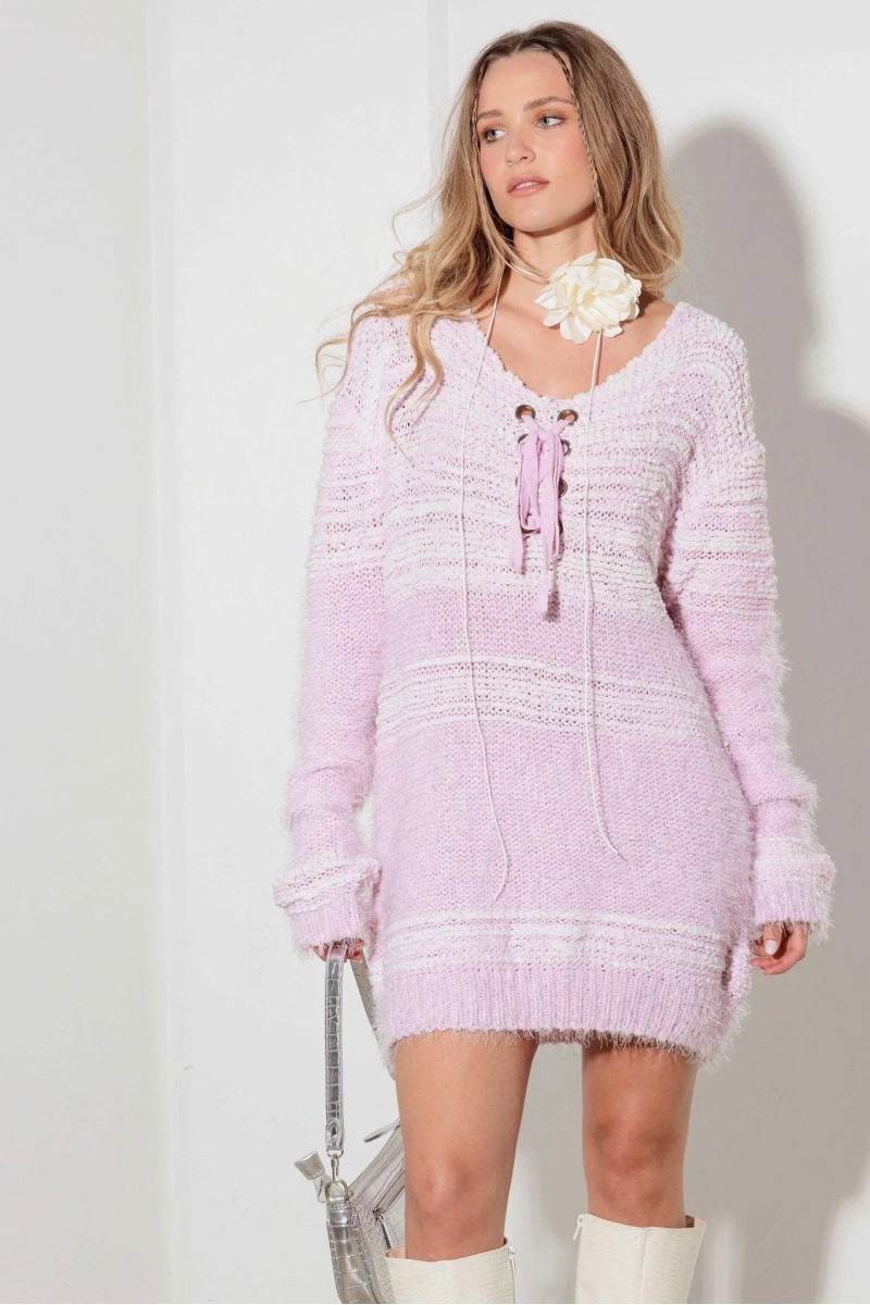 Take on the day with confidence in our Mixed-Stitch Front Tie Tunic Sweater Dress! This bold sweater features a mix of stitches, adding texture and interest to your look. The front tie detail creates a flattering silhouette, giving you an adventurous and fashion-forward edge. Upgrade your wardrobe now!