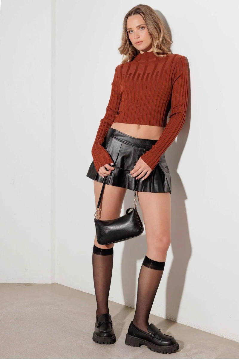 • Product Code: Cut Out Ribbed Pattern Long Sleeve Crop Sweater