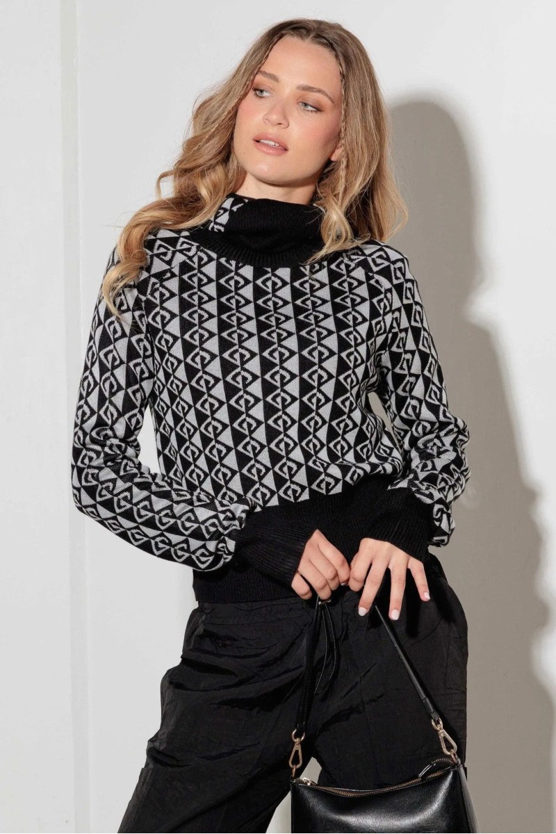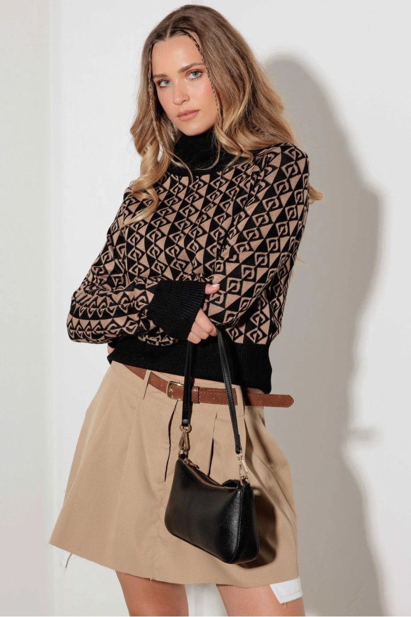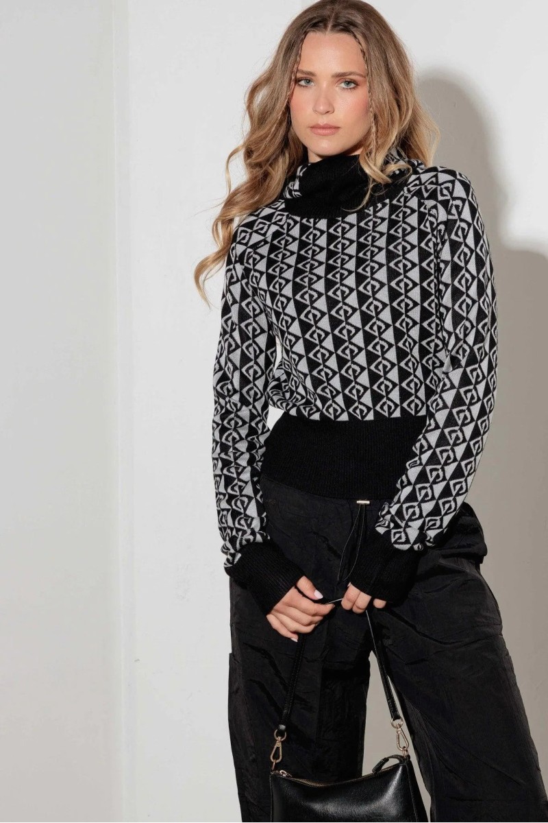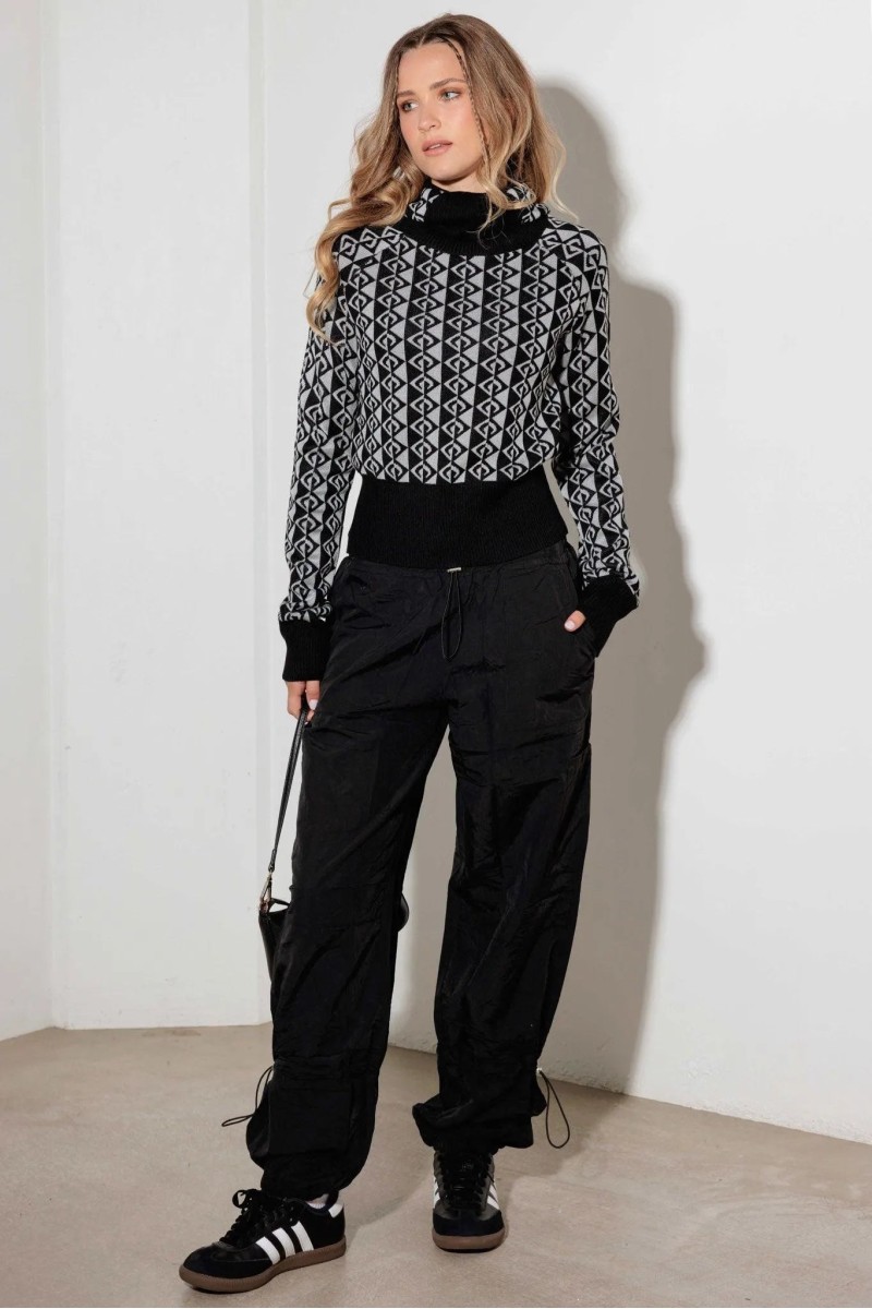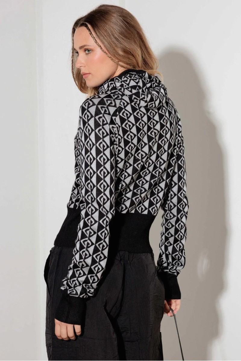 Stay cozy and stylish this winter with our Monogram Turtle Neck Long Sleeve Hooded Balaclava Sweater Top. The perfect combination of fashion and function, this top features a soft and warm balaclava hood that will keep you warm and protected from the cold. Plus, the monogram adds a personalized touch to make it truly yours.