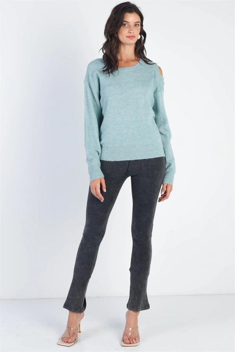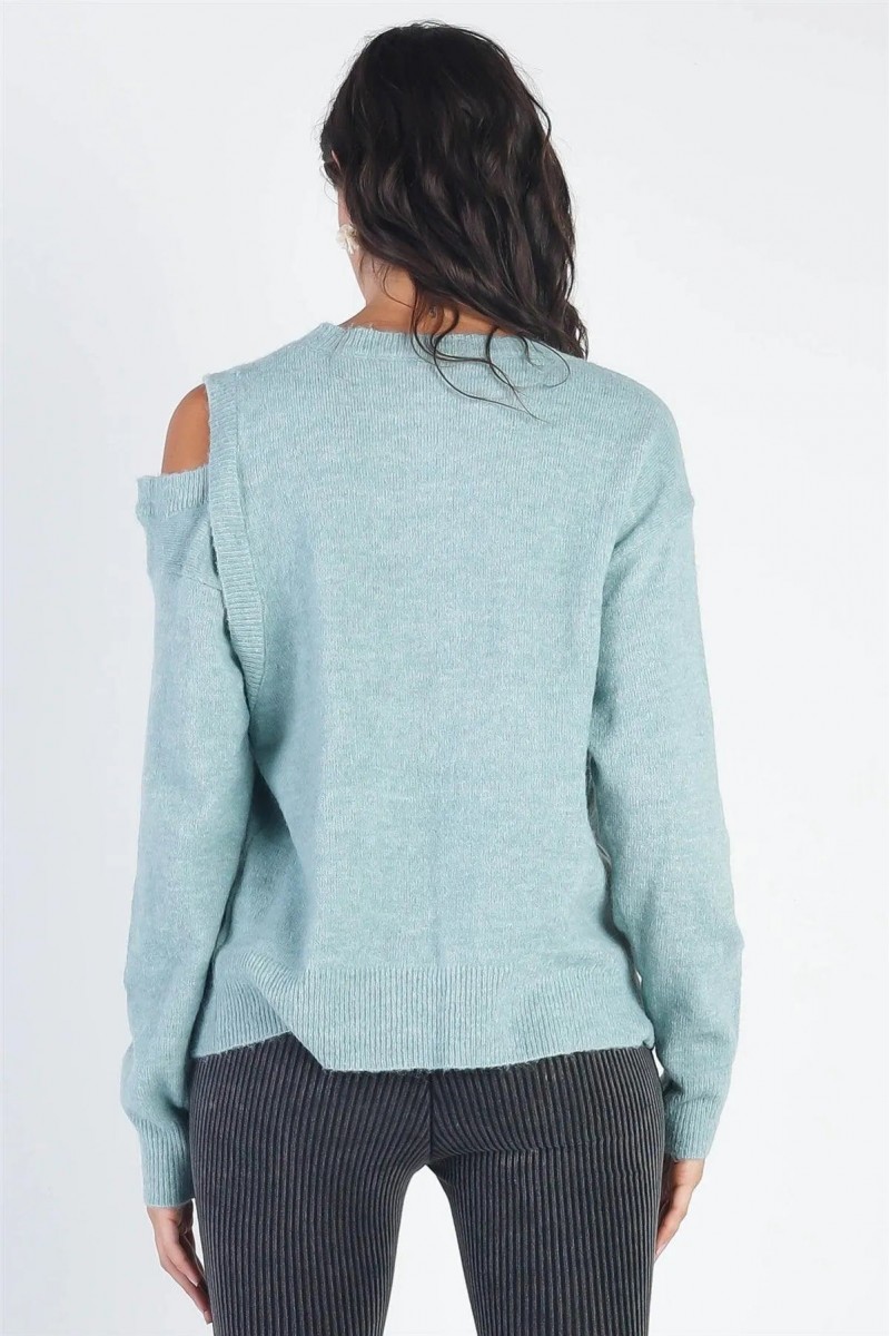 • Product Code: Teal Cold Shoulder Long Sleeve Knit Sweater /3-2-1