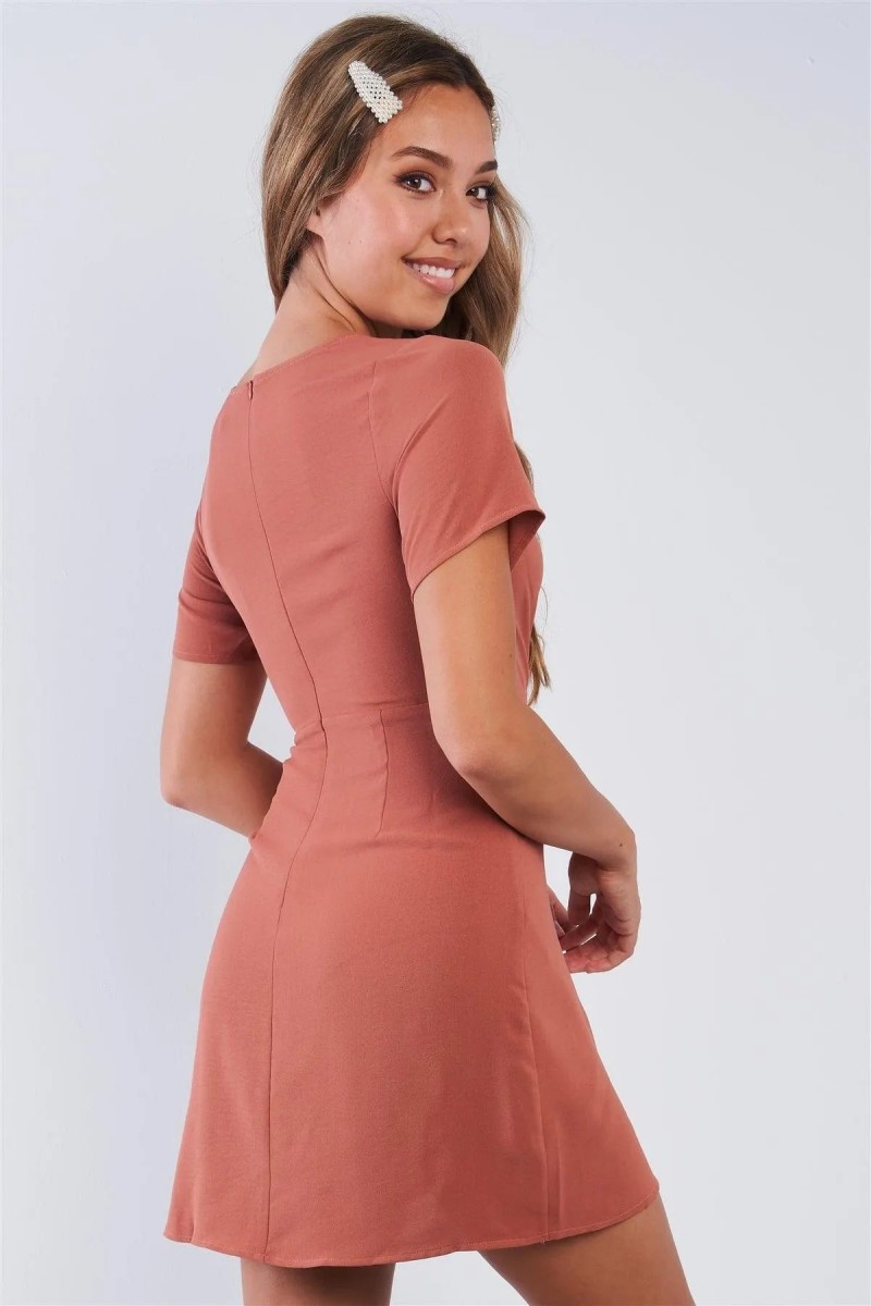• Product Code: Short Sleeve Knotted Crew Neck Chic Mini Dress