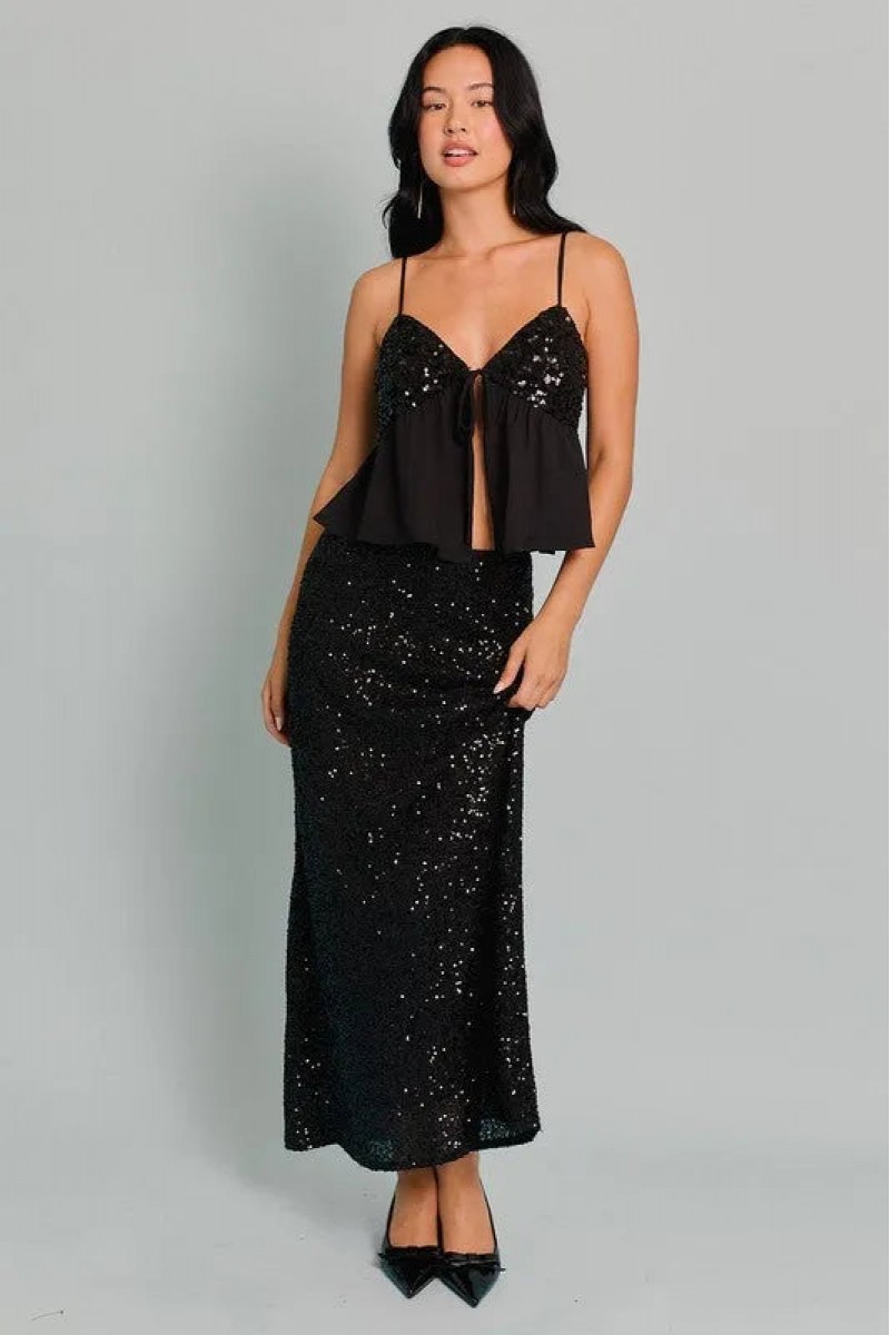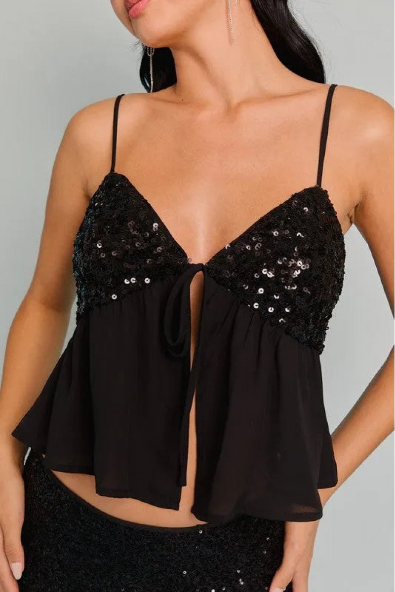 • Product Code: Sequin Chiffon Adjustable Strap Crop Top