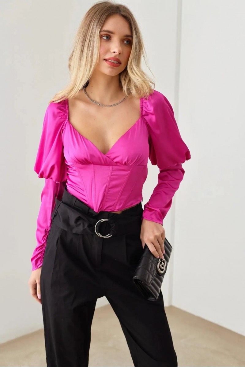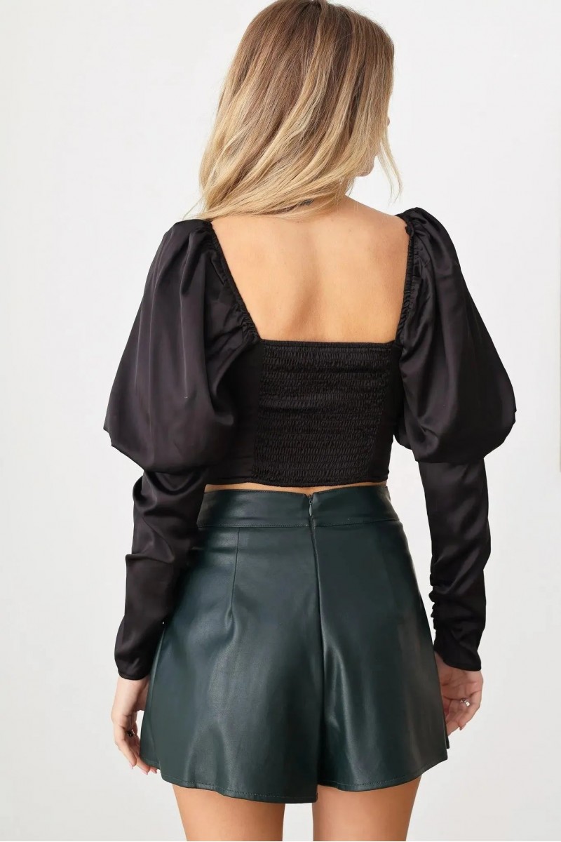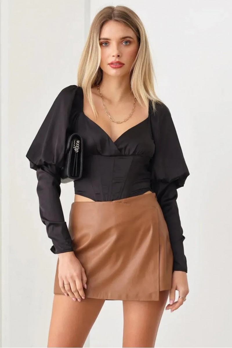 • Product Code: Satin Long Puff Sleeve Corset Crop Top